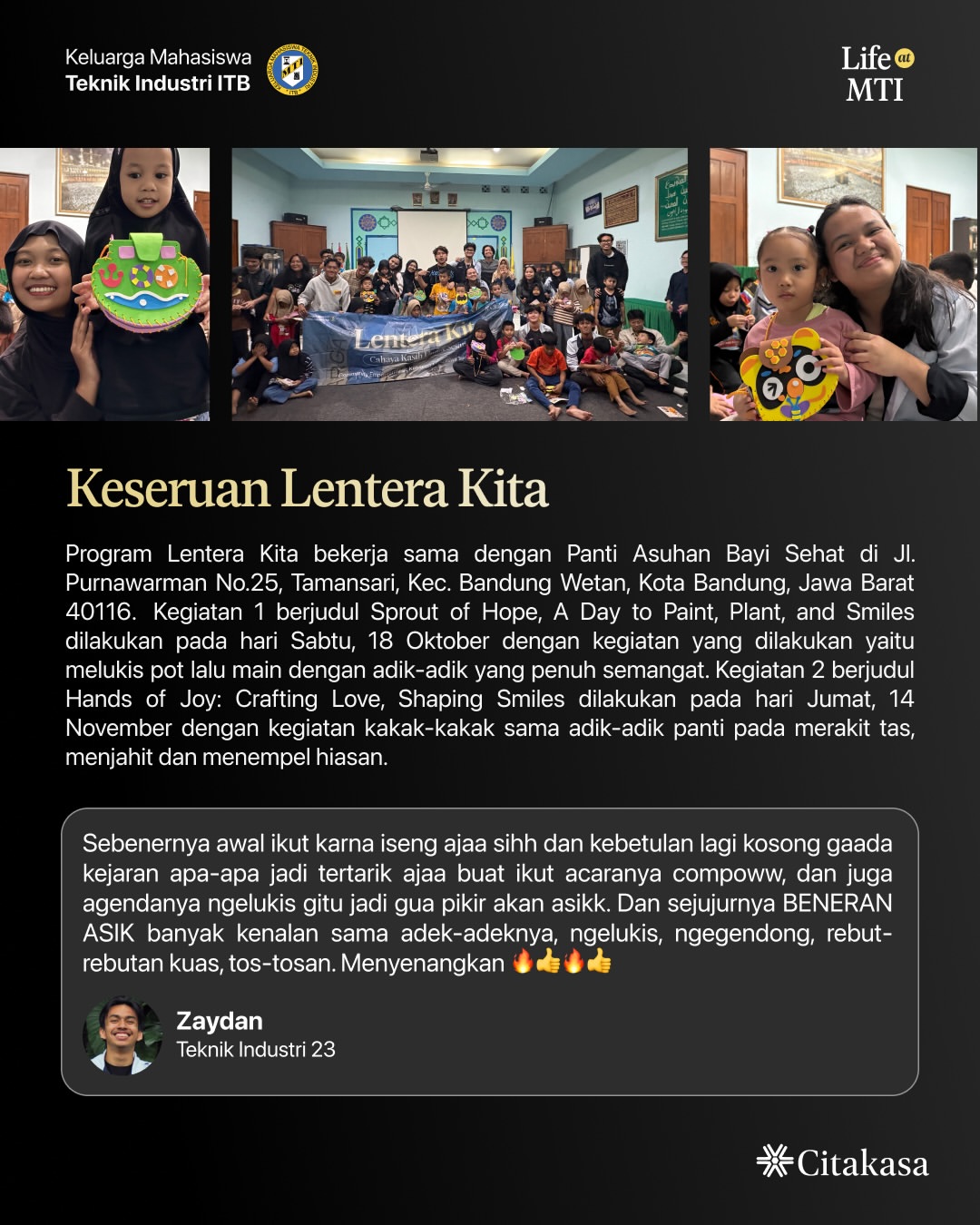 Setiap langkah kecil, melukis pot bareng adik-adik panti, memberikan 90 kantong darah penyelamat hidup, sampai belajar bantuan hidup dasar, adalah bukti bahwa kepedulian selalu punya ruang untuk tumbuh.